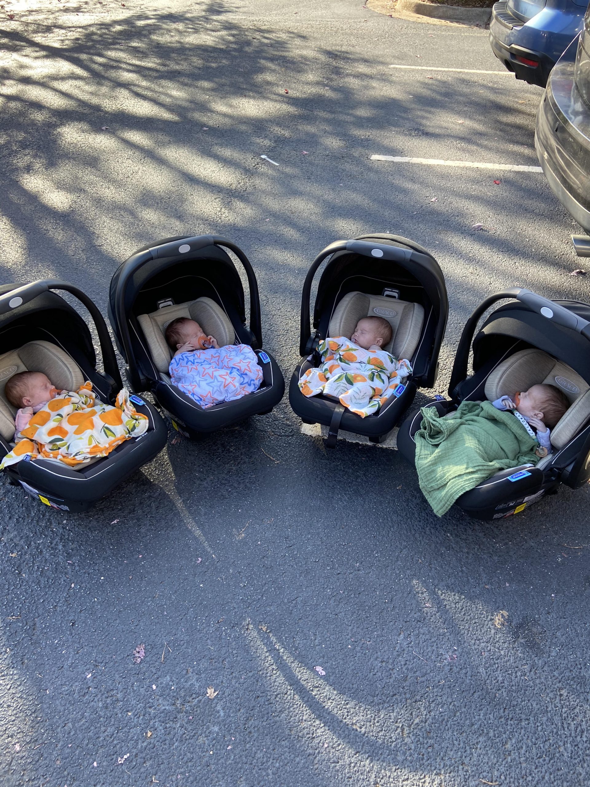 I couldn’t believe it. All of our plans were out the window now. We didn’t have 4 car seats or anywhere big enough to live. We don’t even have a car big enough to get them all home from the hospital! I started crying hysterically. The doctor told me I should call my husband, so I did.
